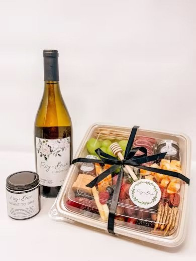 One fig+brie signature picnic box, one 750ml fig+brie chardonnay, and one 3 oz. meant to brie candle